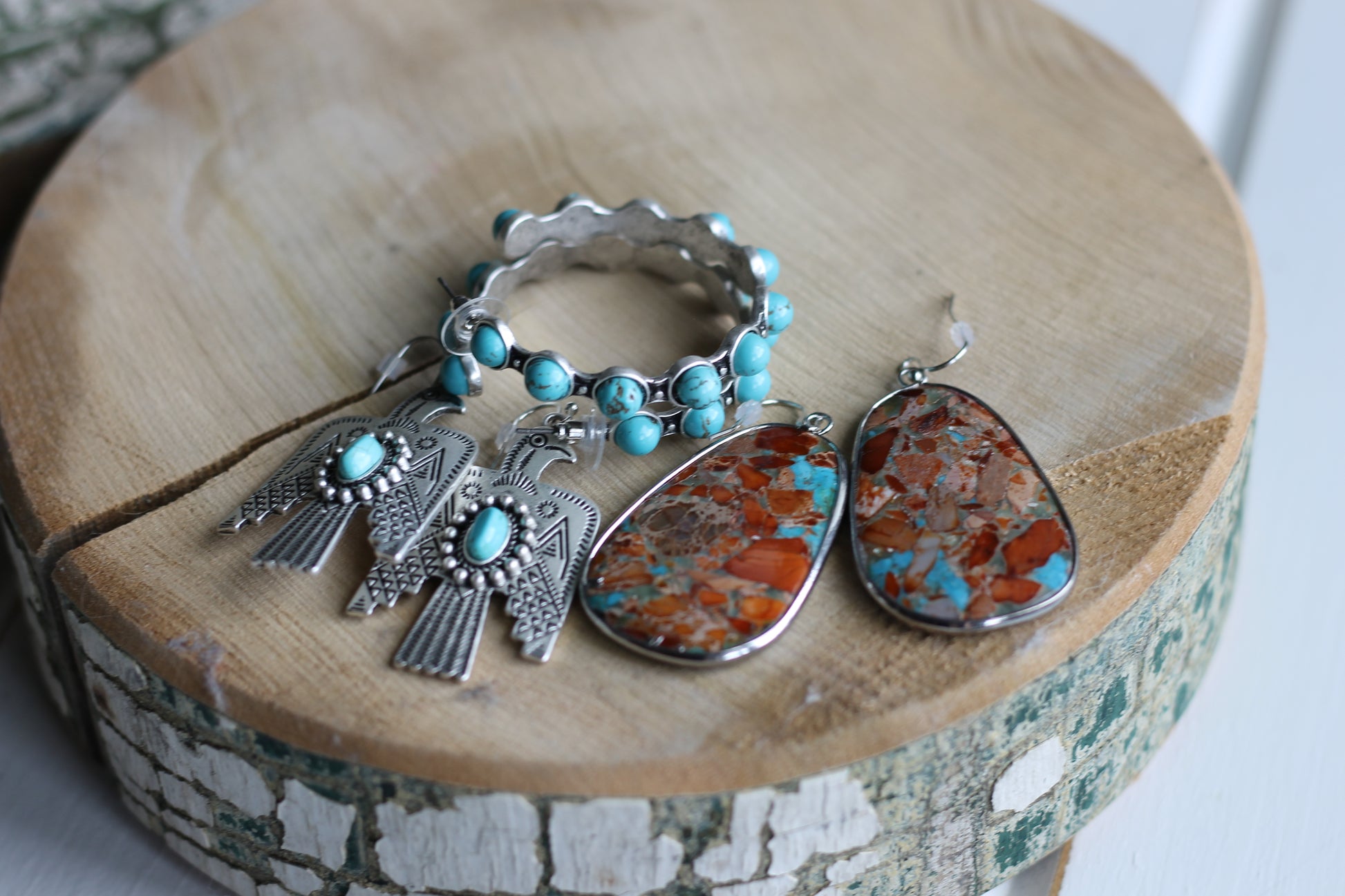 - 1.75" Long, Navajo Turquoise Hoop Stud Earrings