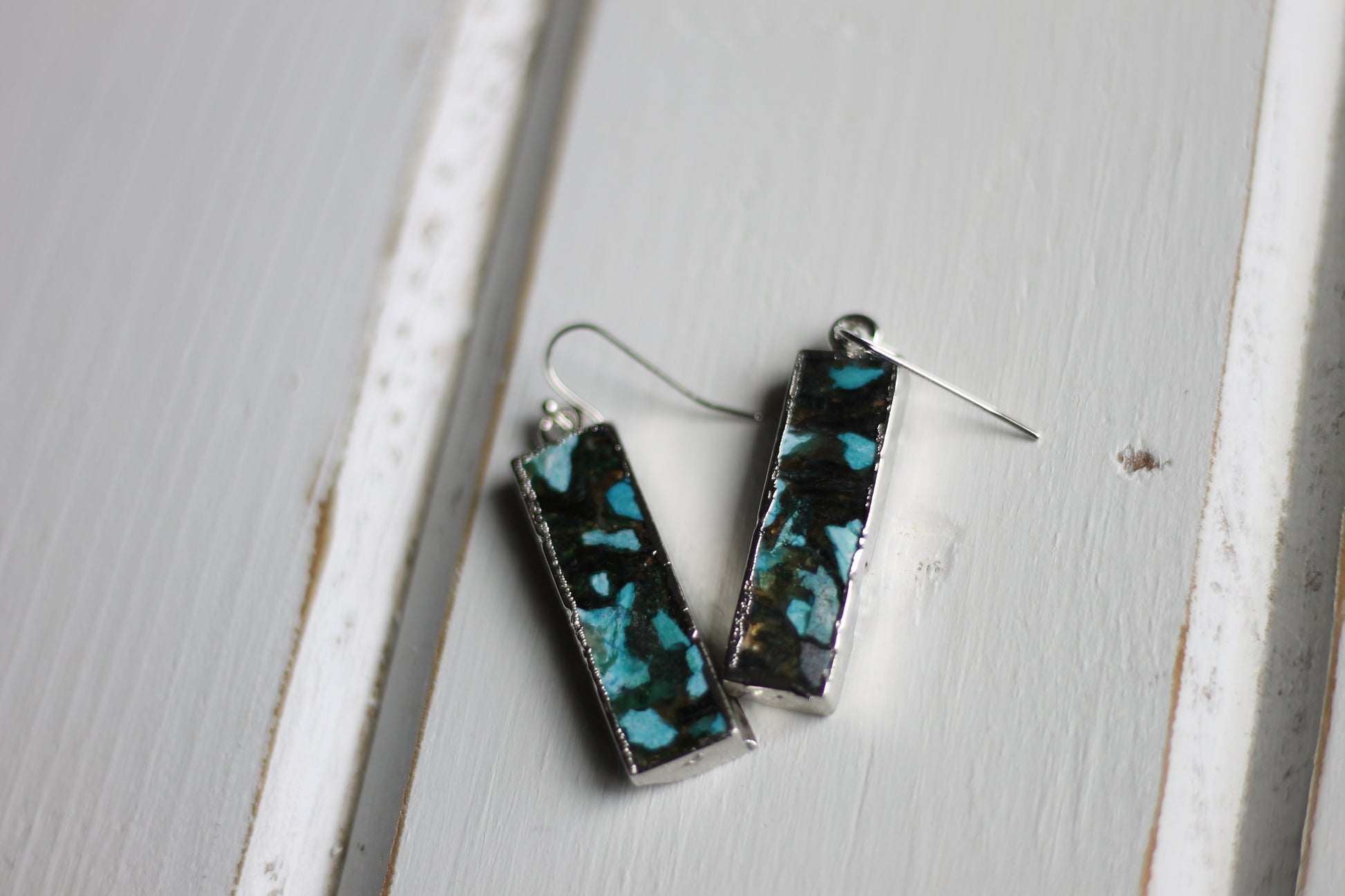 - 1.4" Long, Bar Bezel Setting Gemstone Earrings