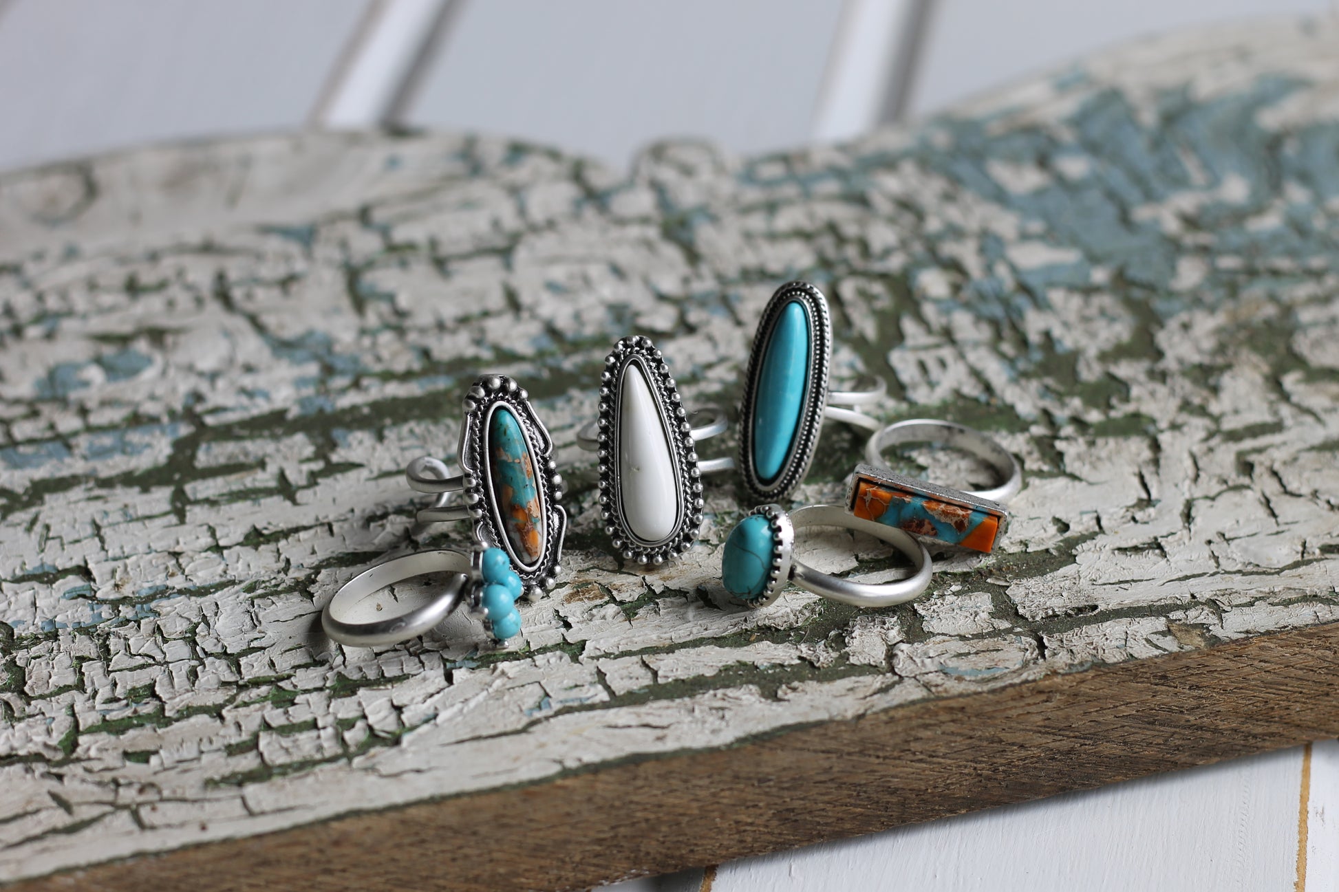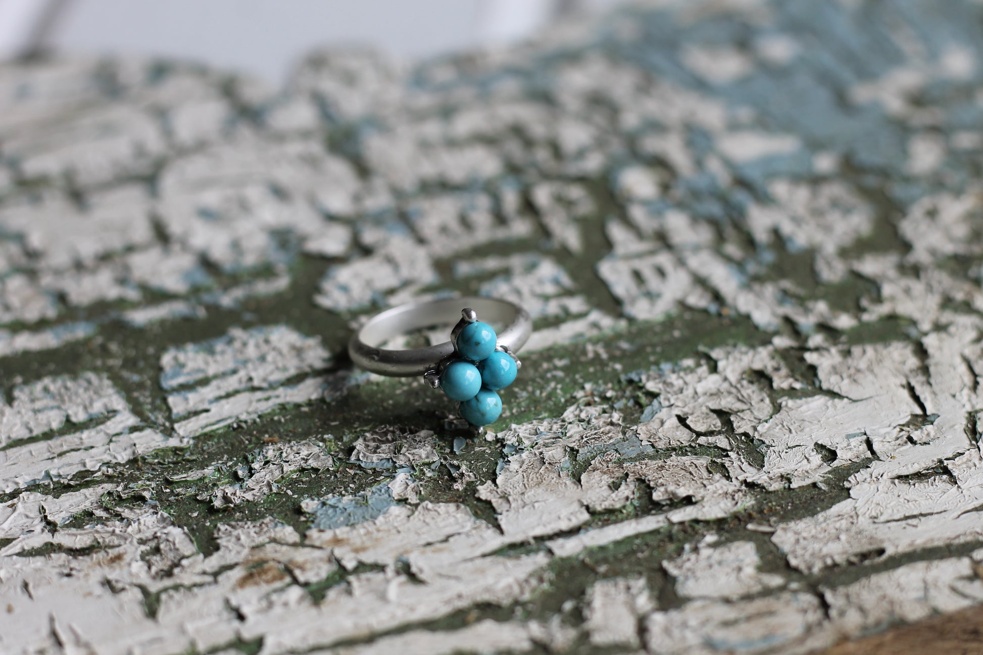 - Small! Turquoise Adjustable Ring, Brass Single Band