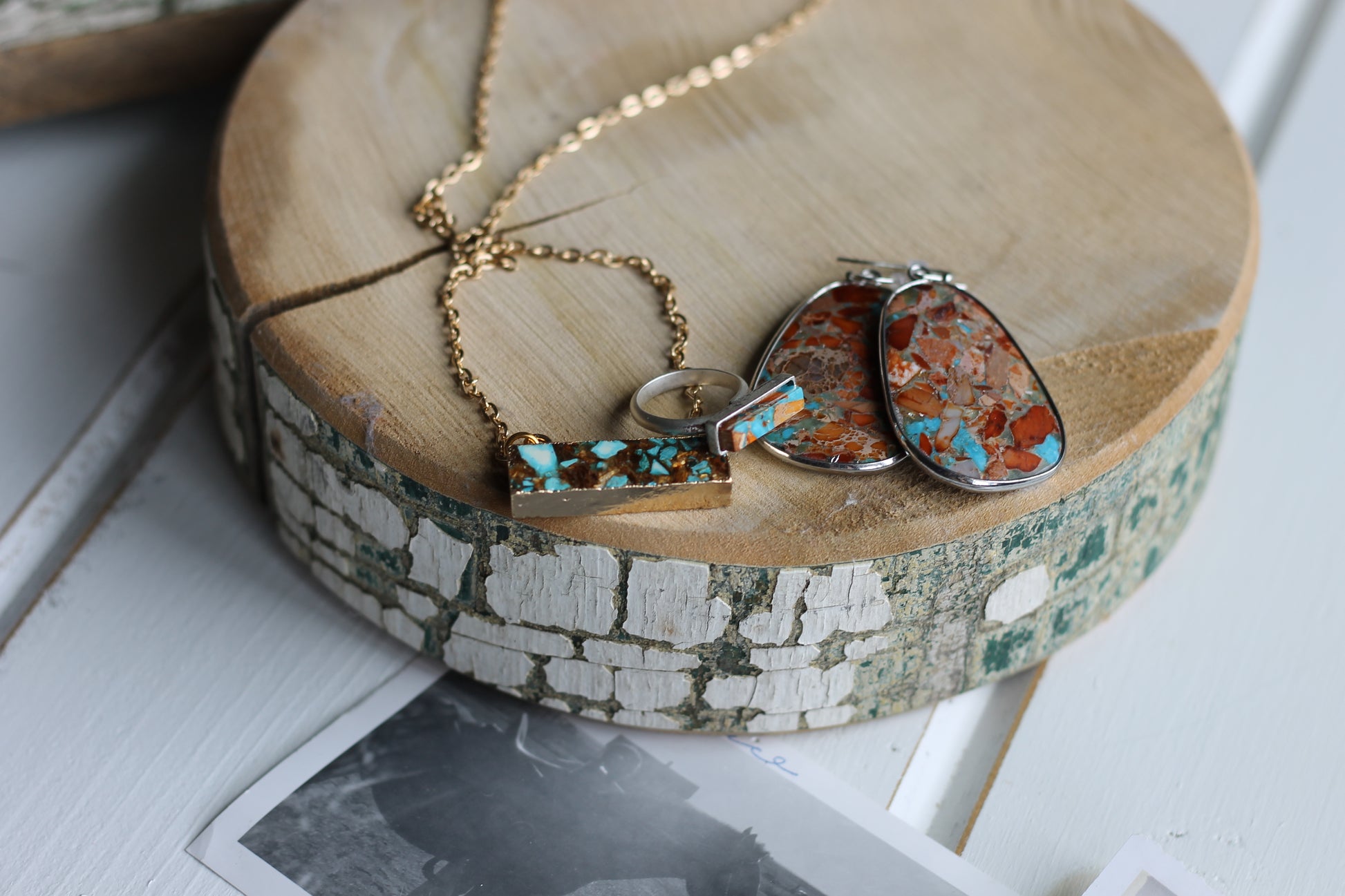 - Gemstone on alloy metal, antique silver plate