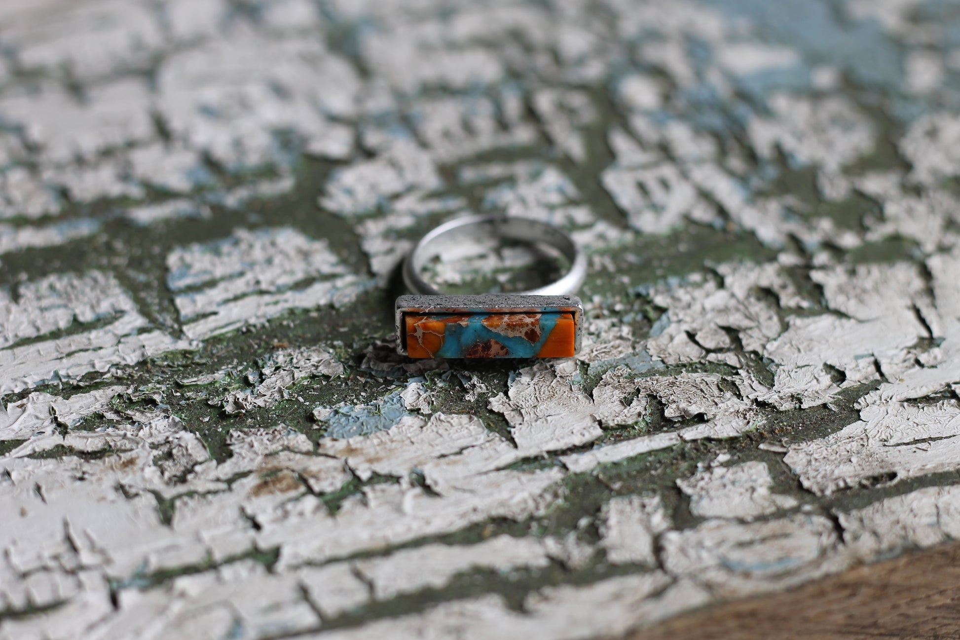 - 0.8" Long, Small Side Bar Gemstone Ring, Brass Single Adjustable Band